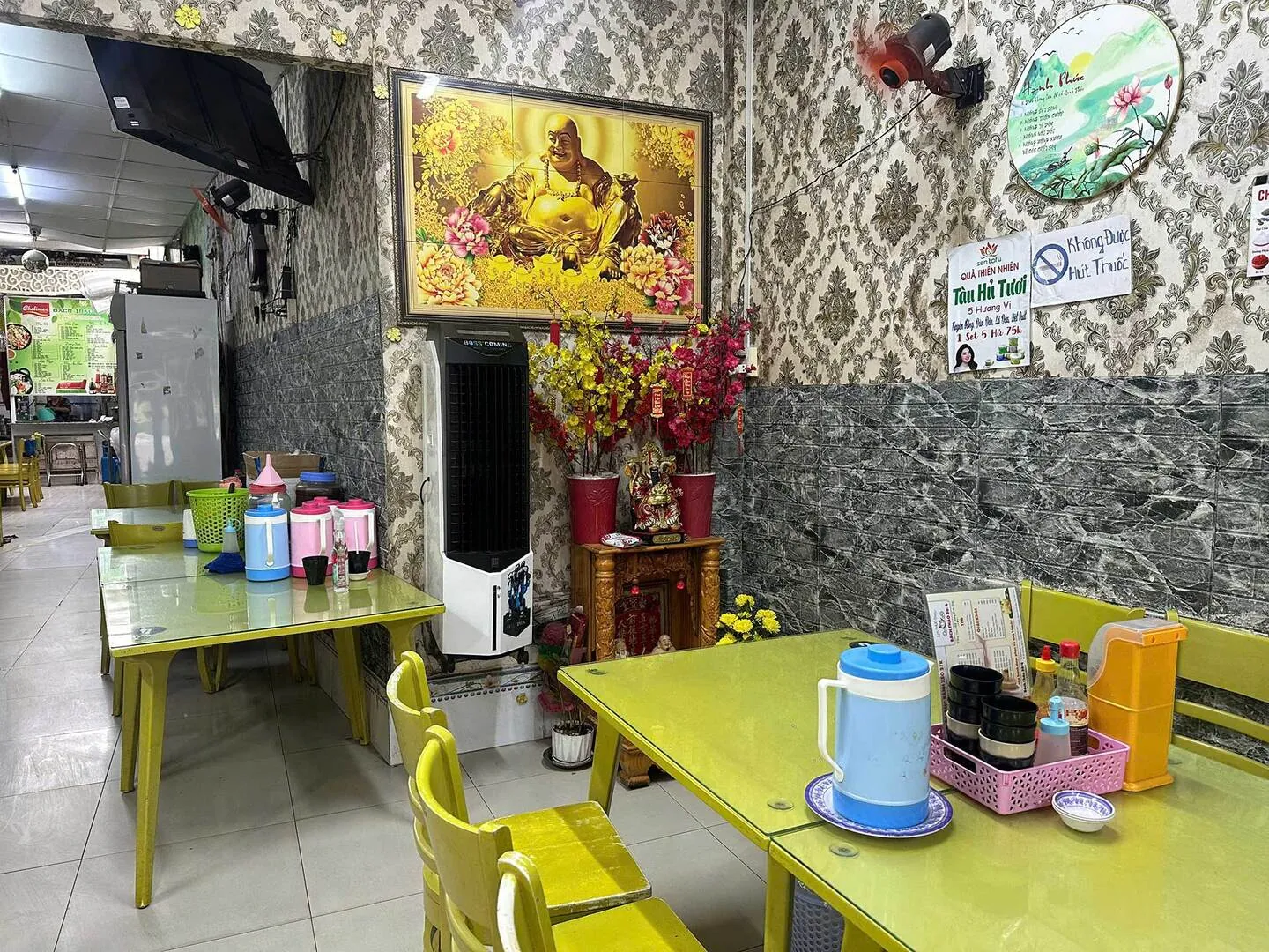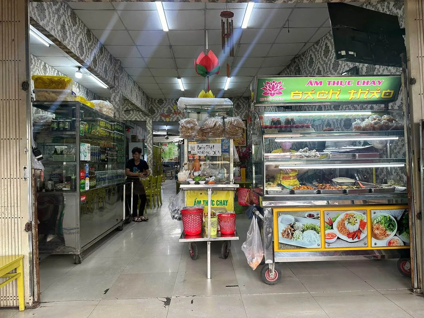 - Không gian tầng trệt đang setup làm quán ăn chay hoàn chỉnh, có thể tiếp quản và kinh doanh ngay.