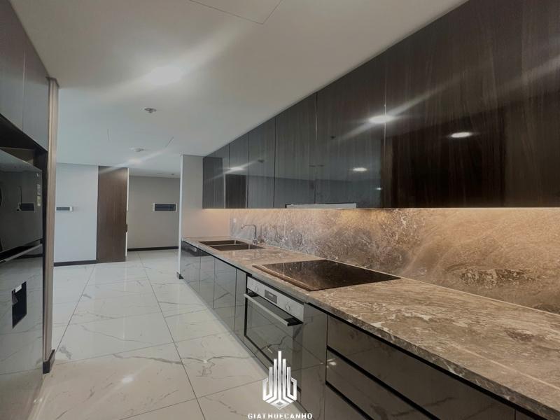 • Bàn đá cẩm thạch, bếp từ, máy hút mùi hiện đại