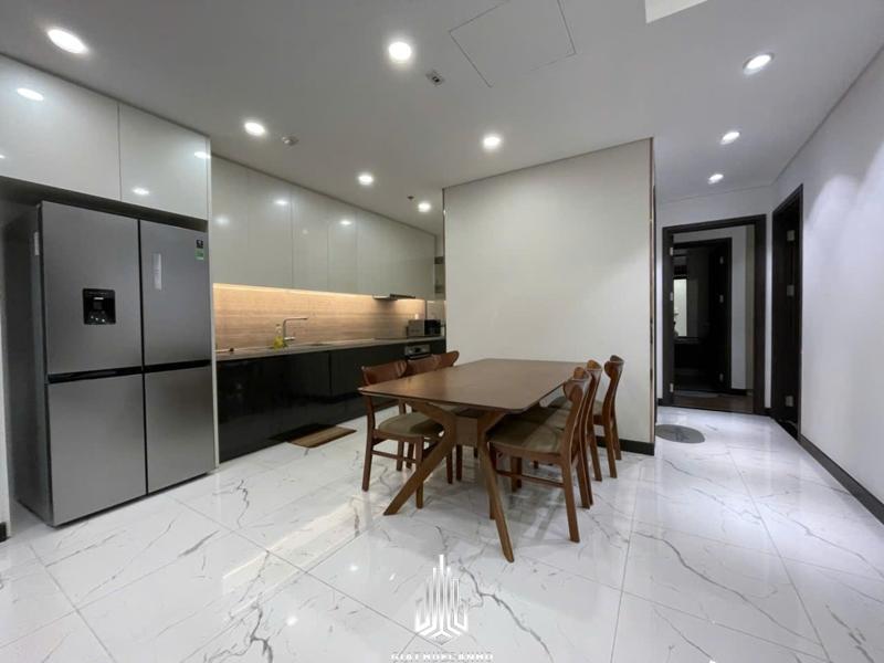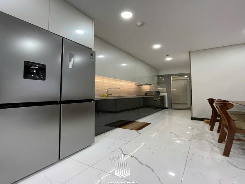 - Phòng bếp trang bị đầy đủ tủ bếp, bếp từ, máy hút mùi cao cấp