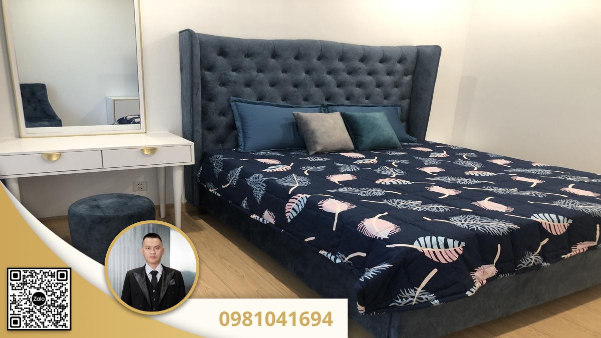 - Giường: Giường đôi đầu giường bọc nỉ xanh navy cao cấp