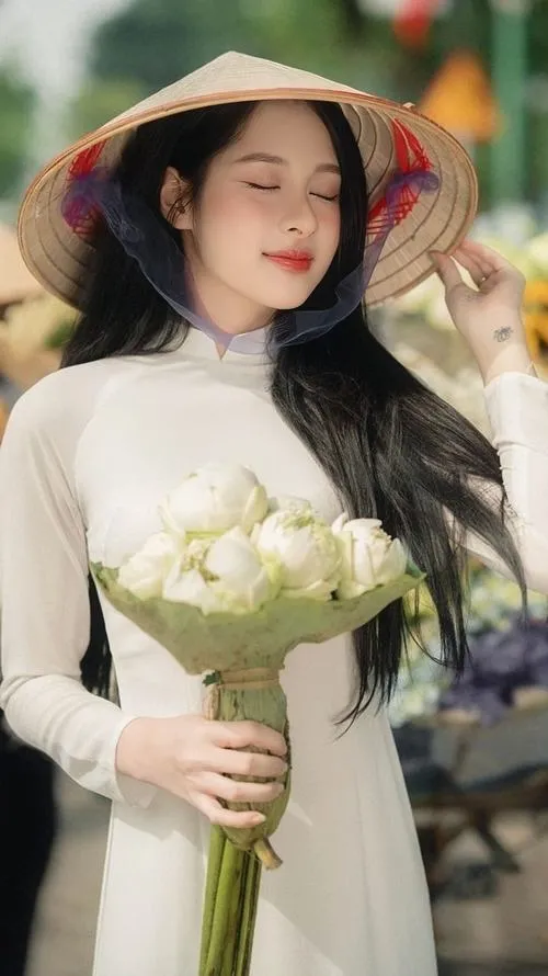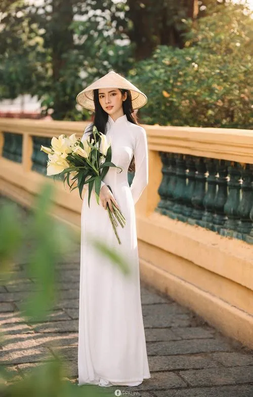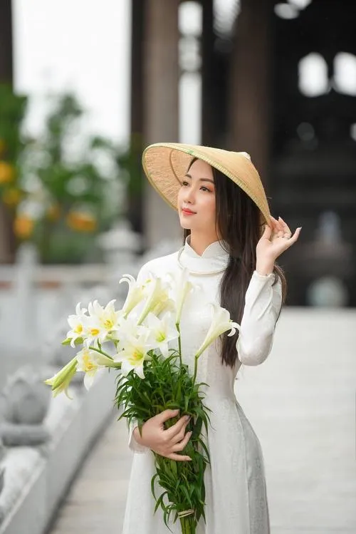 Giathuecanho mang đến những bức ảnh chụp áo dài gợi nhớ vẻ đẹp truyền thống của con gái Việt. Tà áo thướt tha bay trong gió cùng nón lá nghiêng che khuôn mặt tạo nên không khí hoài cổ đầy chất thơ. Các chàng trai sẽ say mê trước nét dịu dàng e ấp và đường cong chữ S được tôn vinh khéo léo trong từng khung hình tại Văn Miếu hay phố cổ.